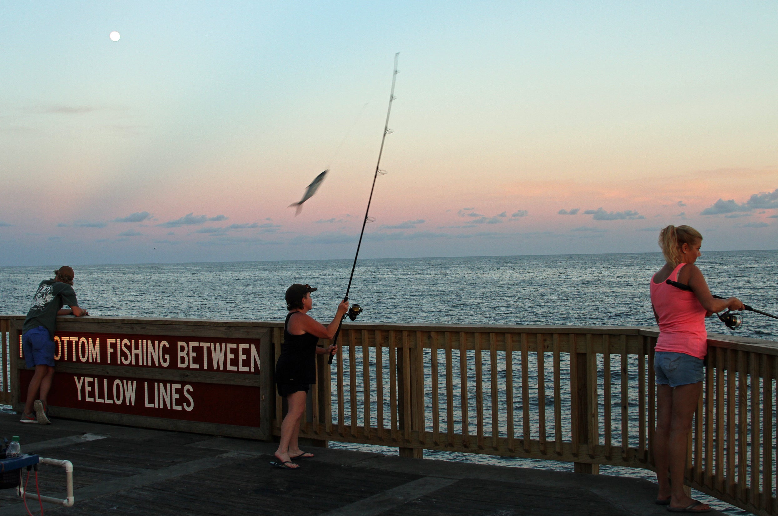 The next chances to fish for sharks on the pier will take place on the south end from 7 p.m. until 7 a.m. the following morning on Sunday and Tuesday nights on July 8, 10, 15, 17, 22, 24, 29 and 31. The previous shark-fishing times had been 8 p.m. to midnight. Parks officials realized anglers had a great deal of success just as the sun was setting and decided to start the fishing an hour earlier. Anglers said the sharks were causing problems at daybreak as well.