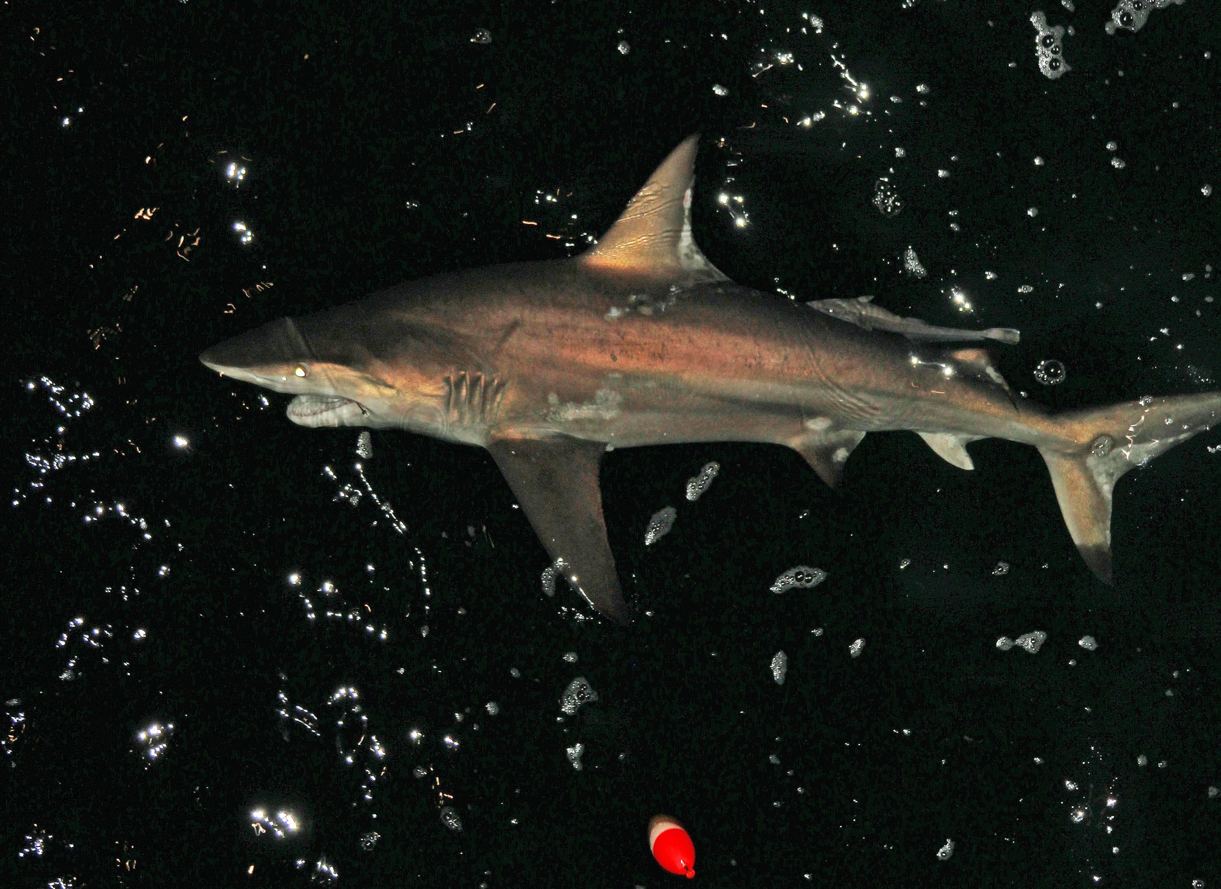 The first night was relatively slow as several sharks were hooked but only one undersized (minimum of 54 inches fork length) fish was landed. The shark was released back into the water.
