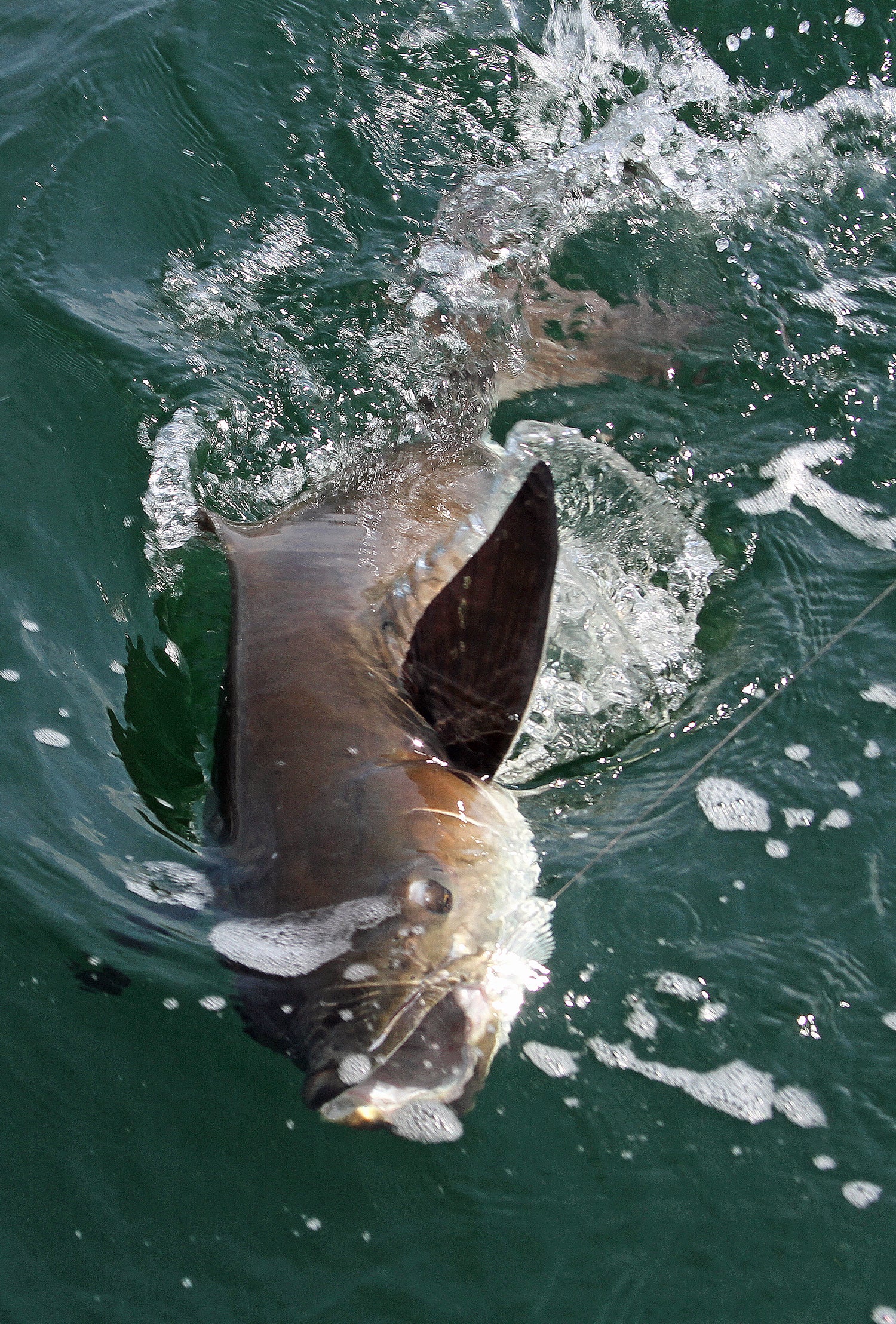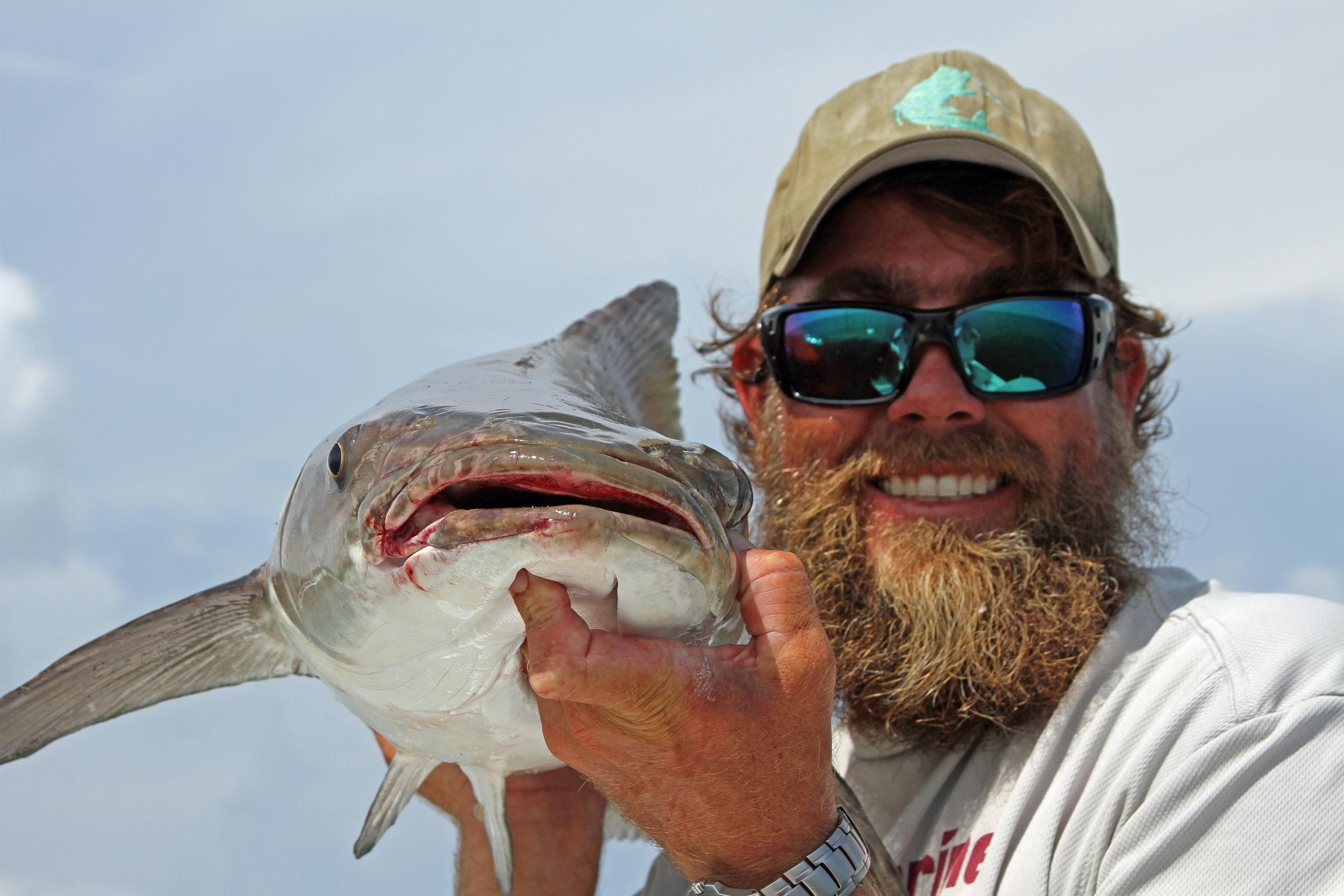 “He looks pretty green to me,” said Rutland, hesitating to throw a 35-pound cobia onto the front of his boat for it to thrash around. He decided to forgo his reticence and quickly yanked the fish in the boat as we kept our distance until the thrashing was over.