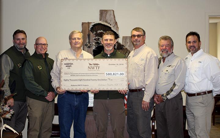 The Alabama Chapter of the National Wild Turkey Federation (NWTF) recently allocated $166,175 in Hunting Heritage Super Funds for wild turkey projects in Alabama. Of that total, $80,821 was donated to the Alabama Division of Wildlife and Freshwater Fisheries (WFF) to fund projects including wildlife habitat management and the publication of the annual wild turkey report, Full Fans & Sharp Spurs.