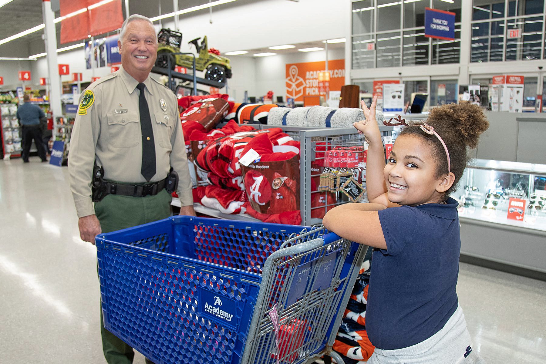 At Academy stores across Alabama, youngsters were chosen to go on shopping sprees with a budget of $150 each, assisted by first responders from the local area. In two locations, Huntsville and Foley, Alabama Conservation and Natural Resources (ADCNR) enforcement officers assisted the kids in choosing the items that were loaded into the shopping carts.
