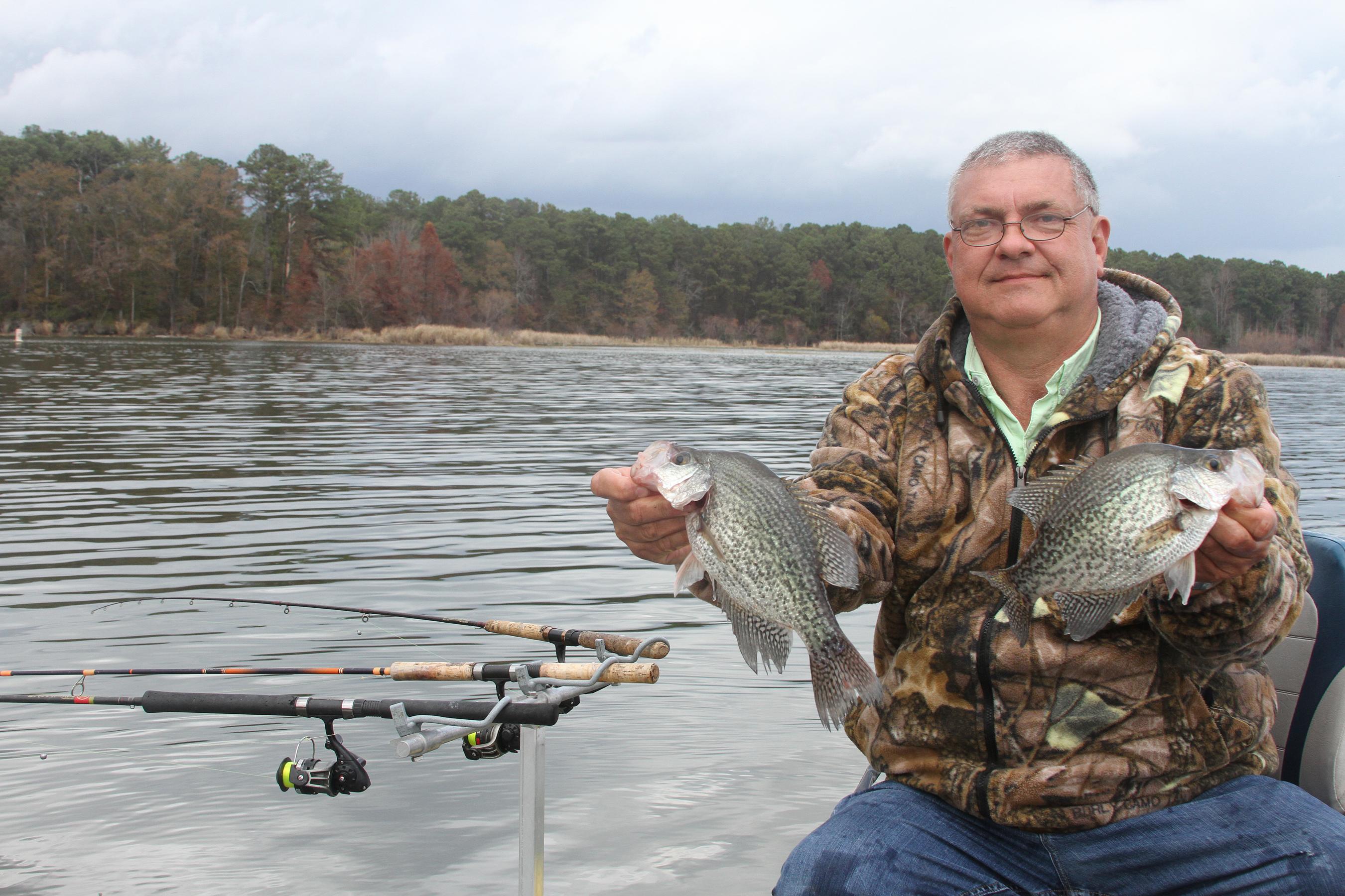 “In the wintertime I try to keep the bait right at about the depth the fish are holding,” he said. “Then we just wait to see that rod tip bounce or go down and then pull in a slab.”