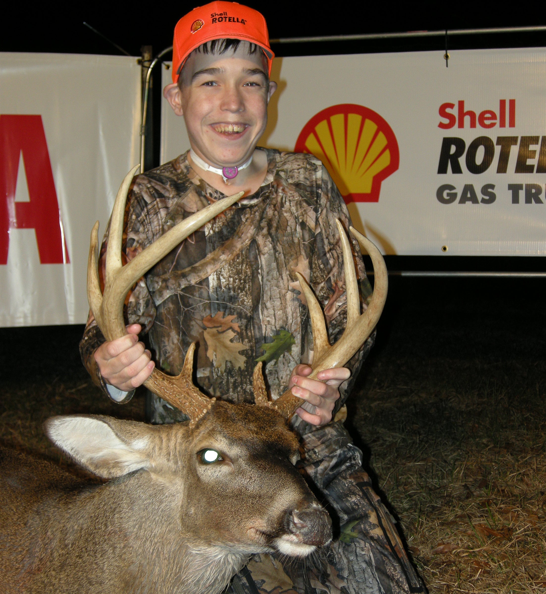 Colton, 9, braved the intermittent downpours to bag a beautiful 10-point buck on the second day of the hunt.