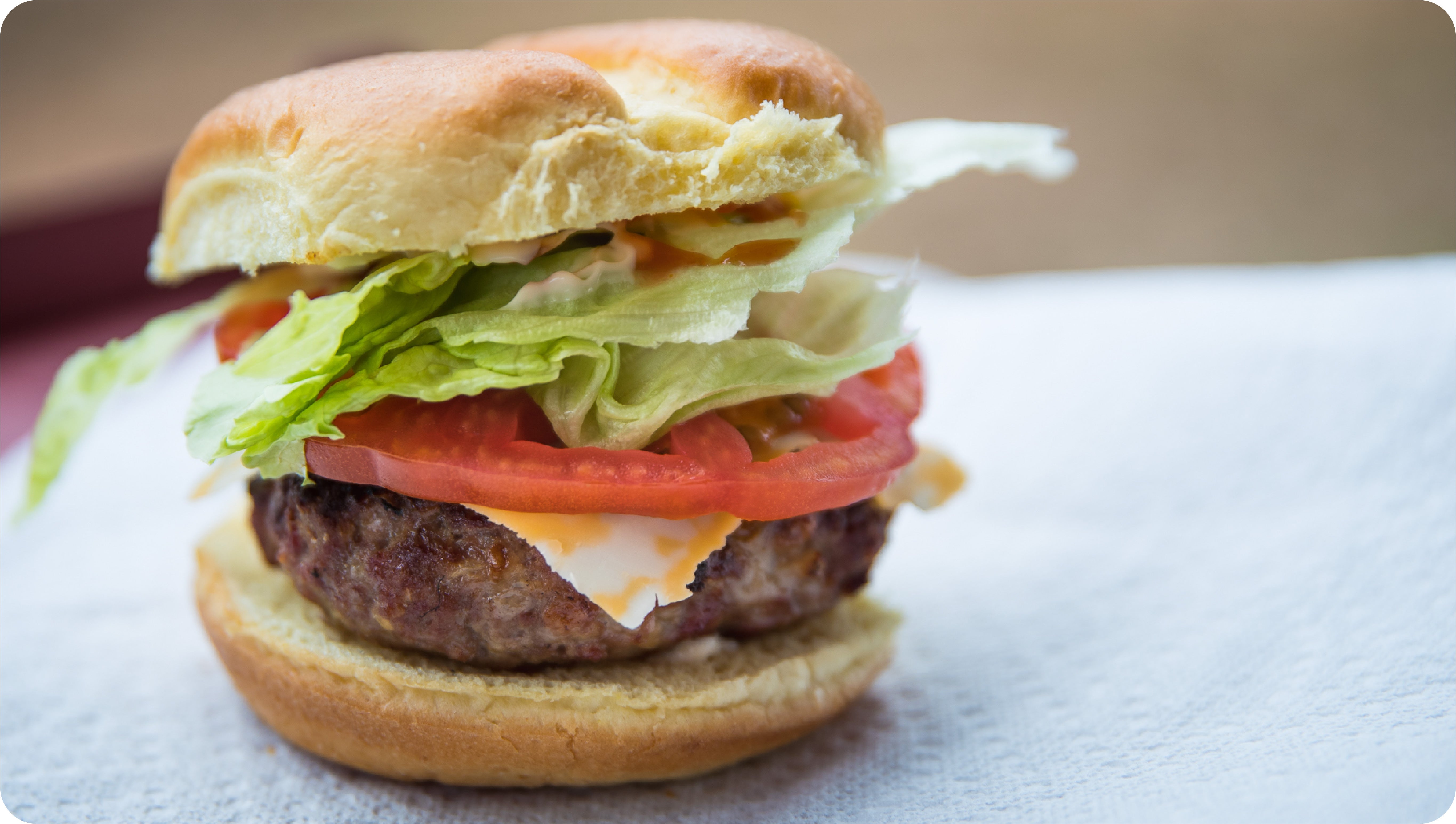 In a large bowl, mix all ingredients by kneading together, get those hands dirty and mix well! Once ingredients are thoroughly mixed, split evenly into four similar sized burger patties. Make sure patties are uniform in shape and firm (loosely pattied burgers will fall apart on the grill). Grill on High heat (approx. 550 degrees or higher) for about 3-4 mins per side. Try not to flip burgers too often to prevent them from drying out. Be sure to keep an eye on the grill at all times as the juice from the burgers can catch a flame. Once they’re cooked to your liking, remove from the grill and top with a slice of your favorite cheese, my personal recommendation is colby jack. Enjoy!